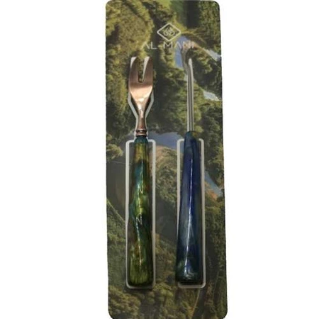 Uwaga: Zestaw Widelec i Dziurkacz Al Mani posiada trzy różne kolory. Każdy zamówiony zestaw jest dobierany kolorystycznie losowo. W przypadku wyjątkowo wielkiej chęci nabycia danego koloru prosimy zaznaczyć to w odpowiednim polu przy dokonywaniu zakupu.